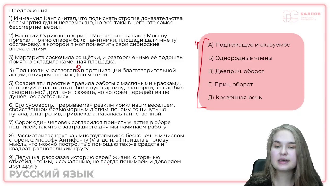 5) В предложении 43 присутствует элемент описания. Все варианты ответа надо, конечно, проверять.
